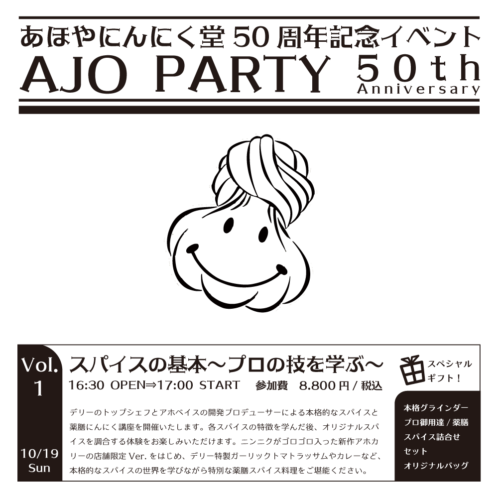 10/19[日] 17:00 -|AJO BASE 店舗イベント開催 AJO PARTY VOL.1【スパイスの基本~プロの技を学ぶ~】