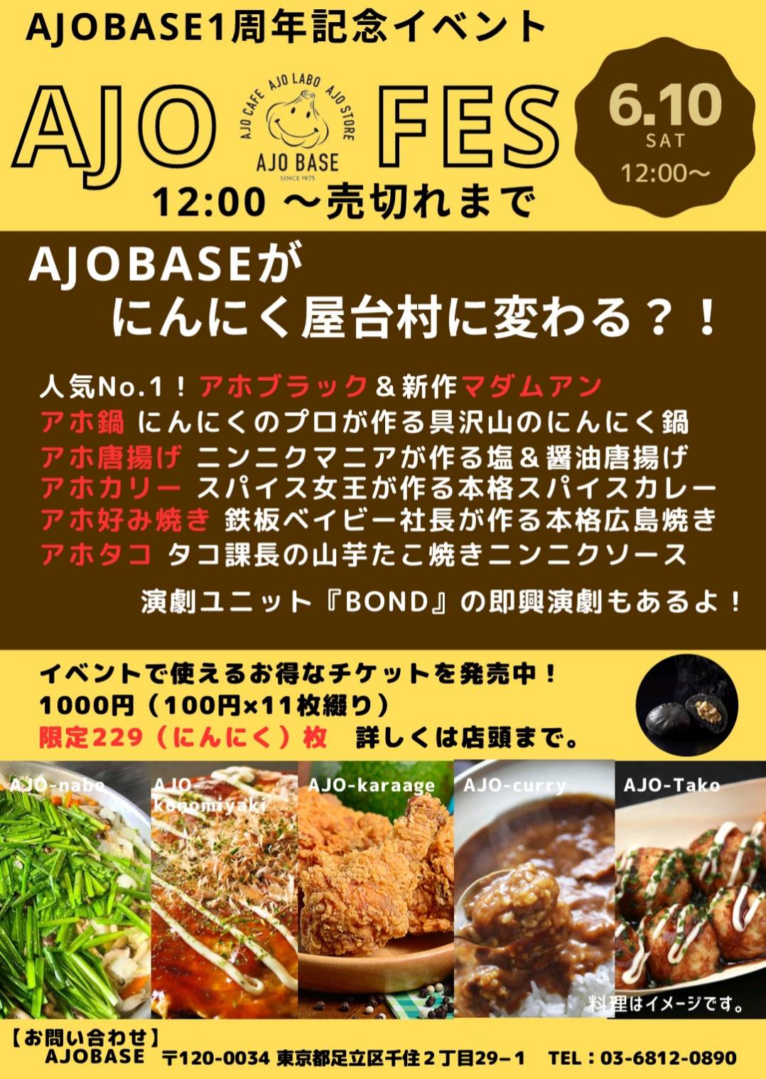 6/10[日] 12:00 -|AJO BASE 店舗イベント開催【AJO BASE1周年記念 AJO FES】 2023 6/10 イベント 2023年6月10日 イベント よかったらシェアしてね! URLをコピーしました! URLをコピーしました! 6/2(金)オンエア、日テレ「ヒルナンデス」でAJO BASEが登場! 当店特製の黒ニンニクが入ったアホベイス珈琲の紹介も! AJO VIDA創刊号