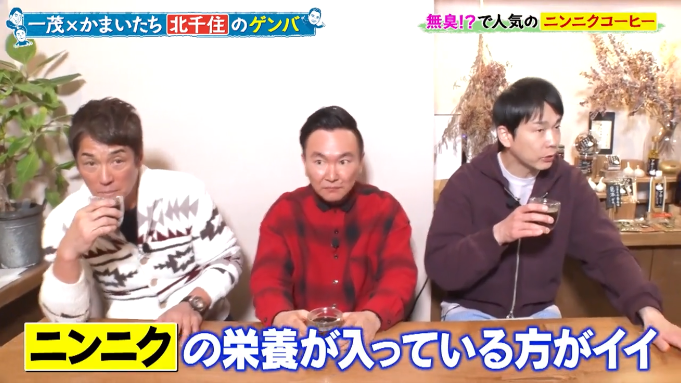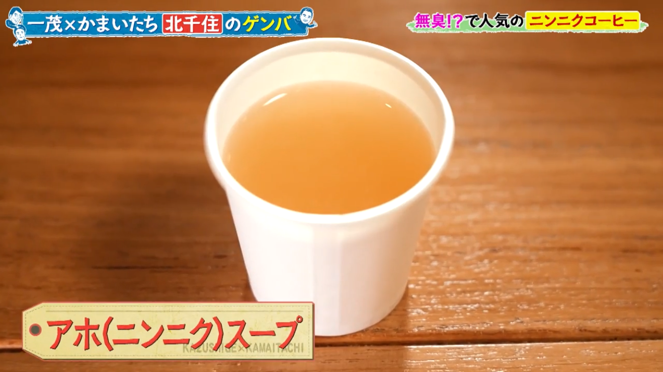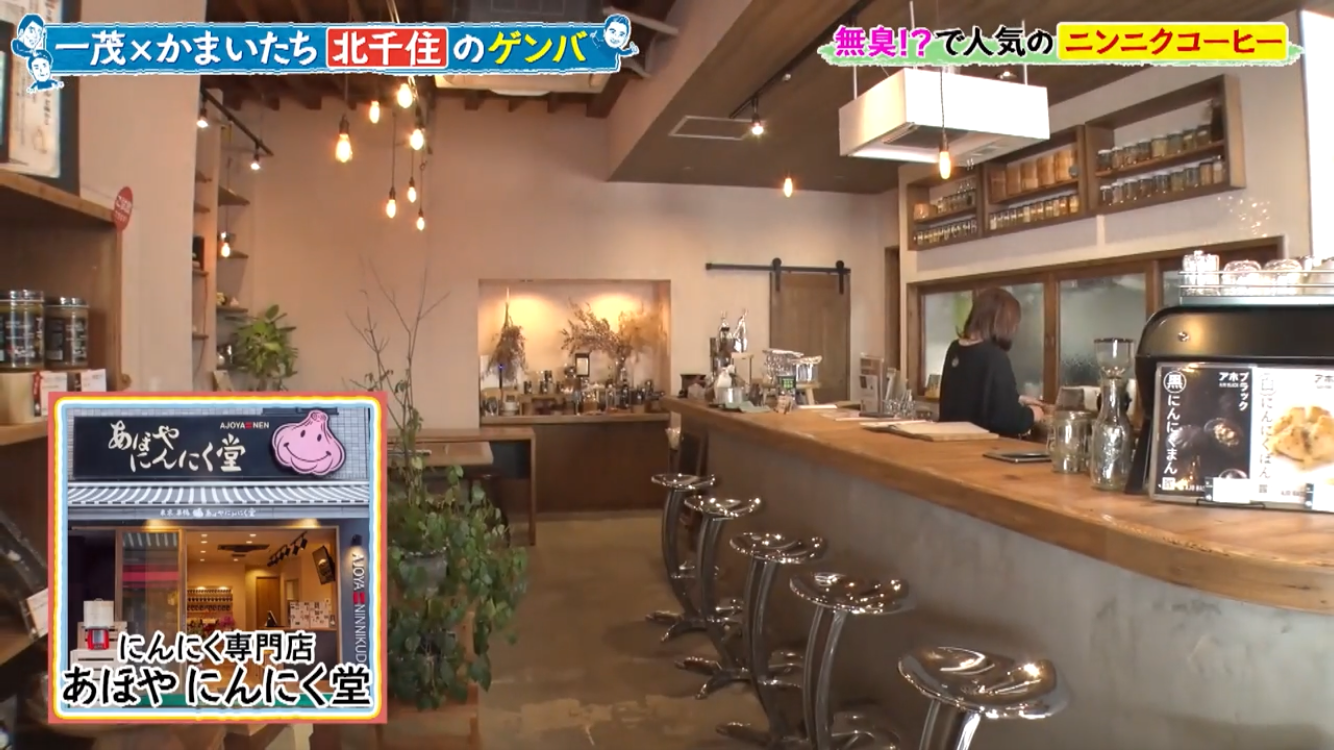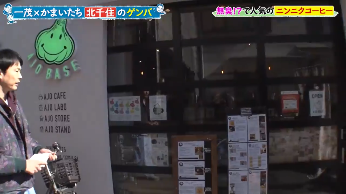 長嶋一茂さん、かまいたちの浜家さんと山内さんのお三方が北千住のアホベイスにご来店。ニンニクスープのアホスープ(鶏ガラベース、旨辛)、にんにく漬物3種、黒にんにく珈琲のアホベイス珈琲、黒にんにく、チーズタップリの当店大人気にんにくパンのアホパンを召し上がられ、気に入っていただけました。ご来店いただき誠にありがとうございます!