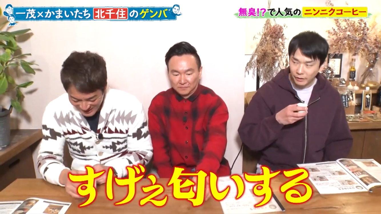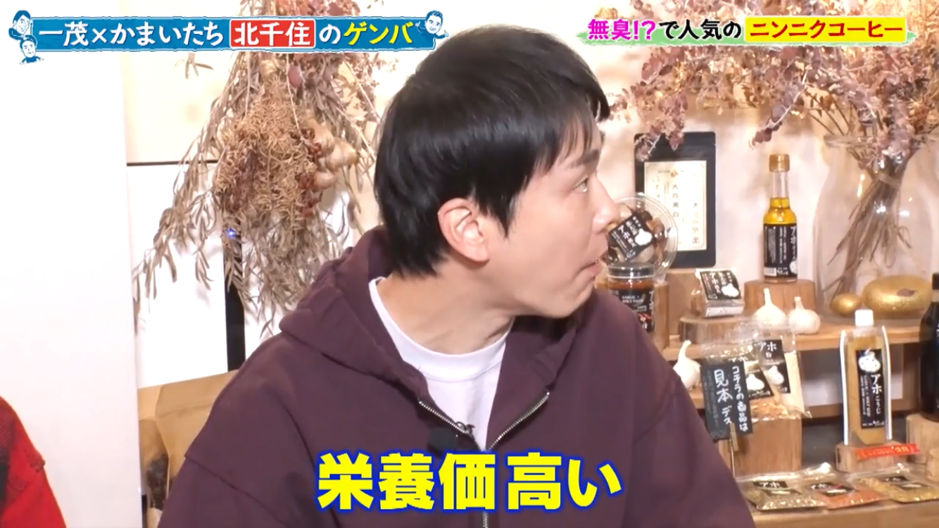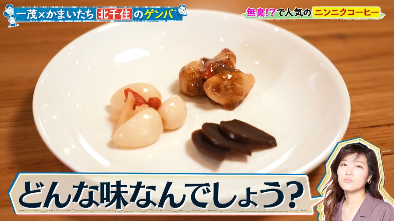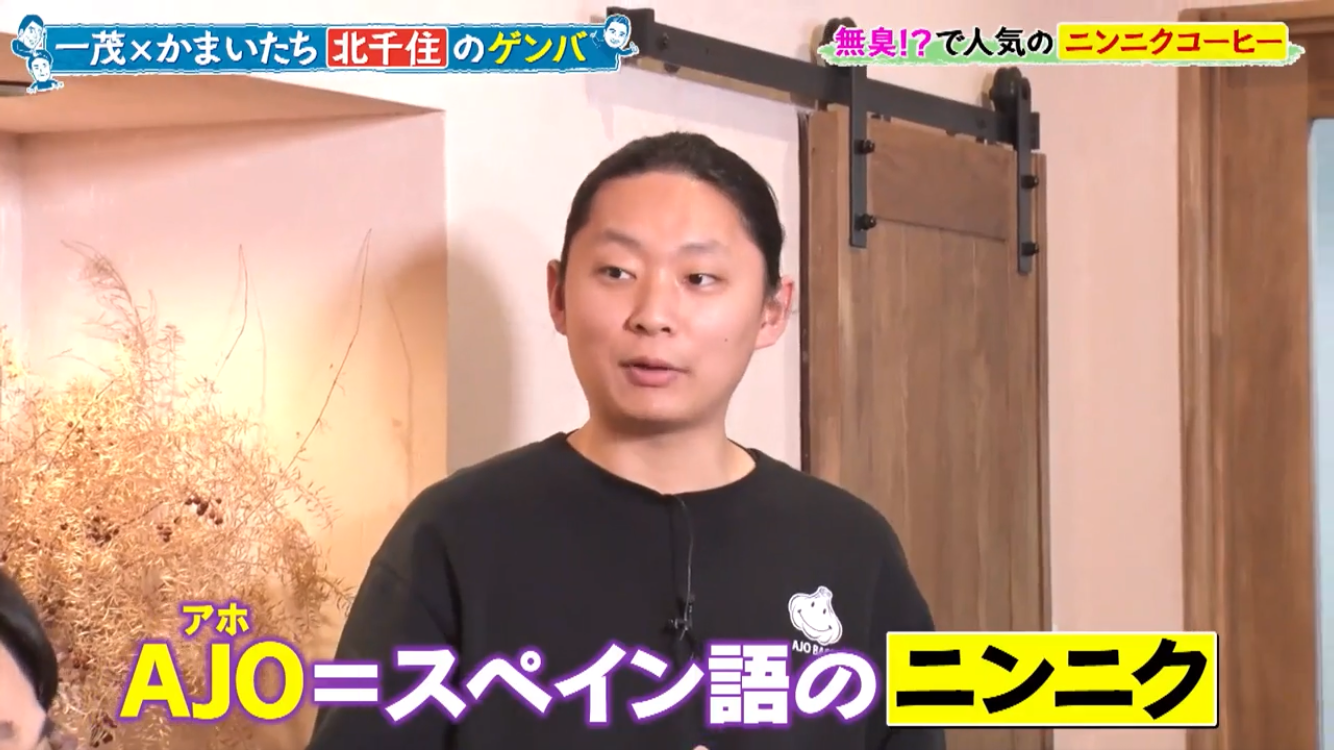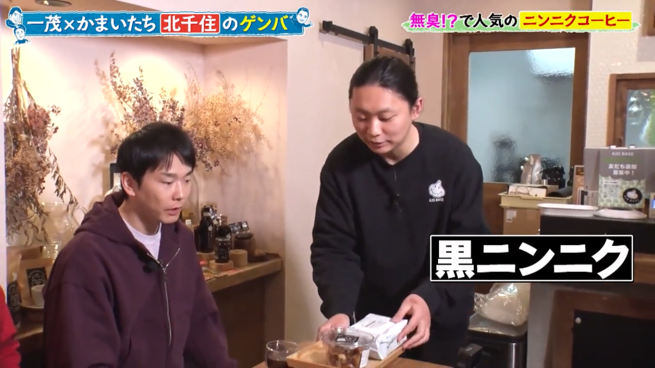 長嶋一茂さん、かまいたちの浜家さんと山内さんのお三方が北千住のアホベイスにご来店。ニンニクスープのアホスープ(鶏ガラベース、旨辛)、にんにく漬物3種、黒にんにく珈琲のアホベイス珈琲、黒にんにく、チーズタップリの当店大人気にんにくパンのアホパンを召し上がられ、気に入っていただけました。ご来店いただき誠にありがとうございます!