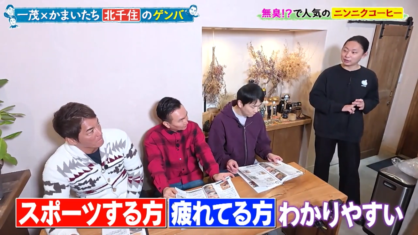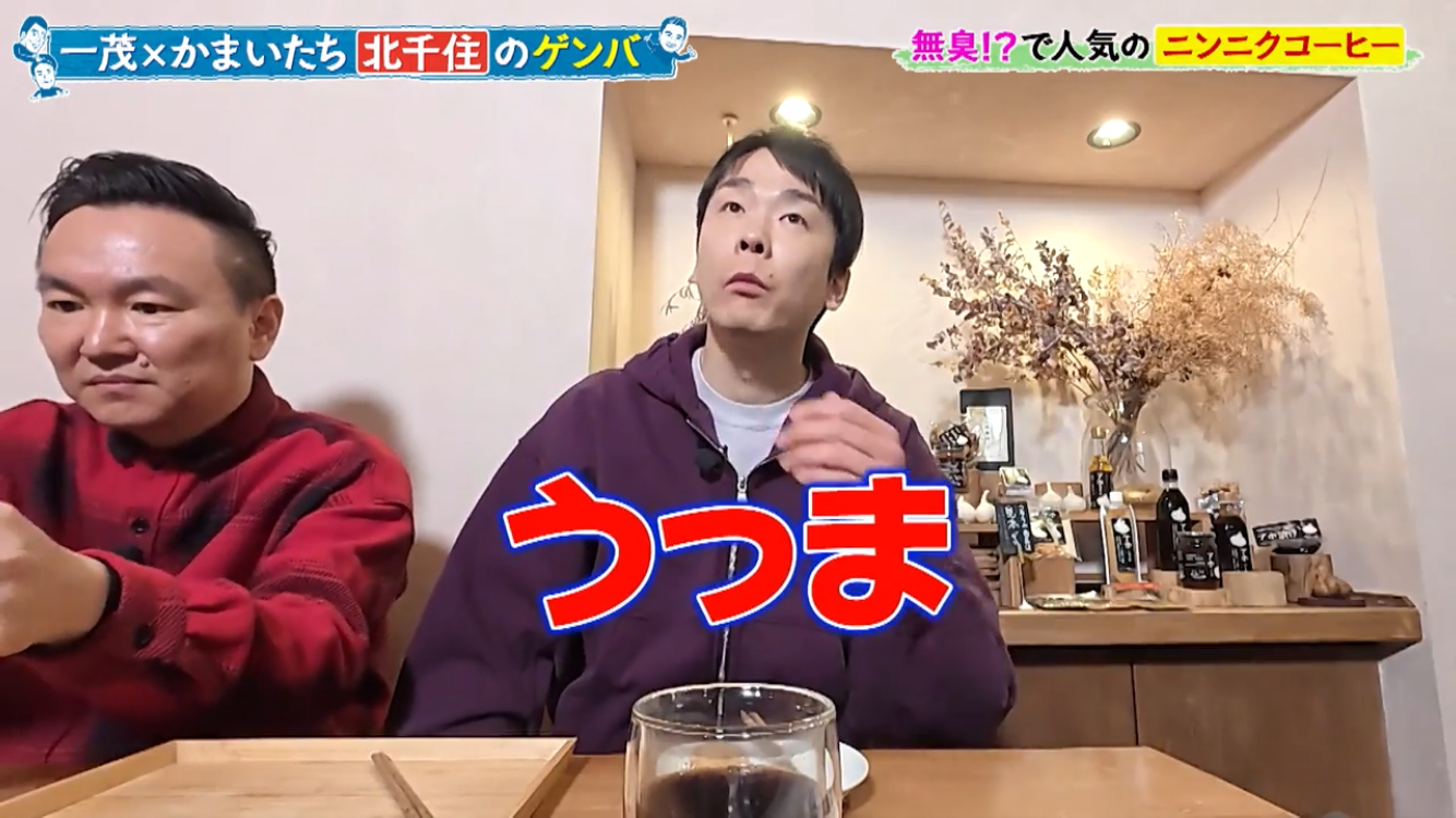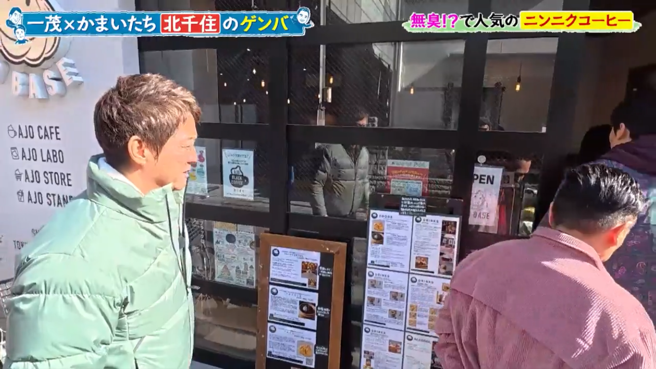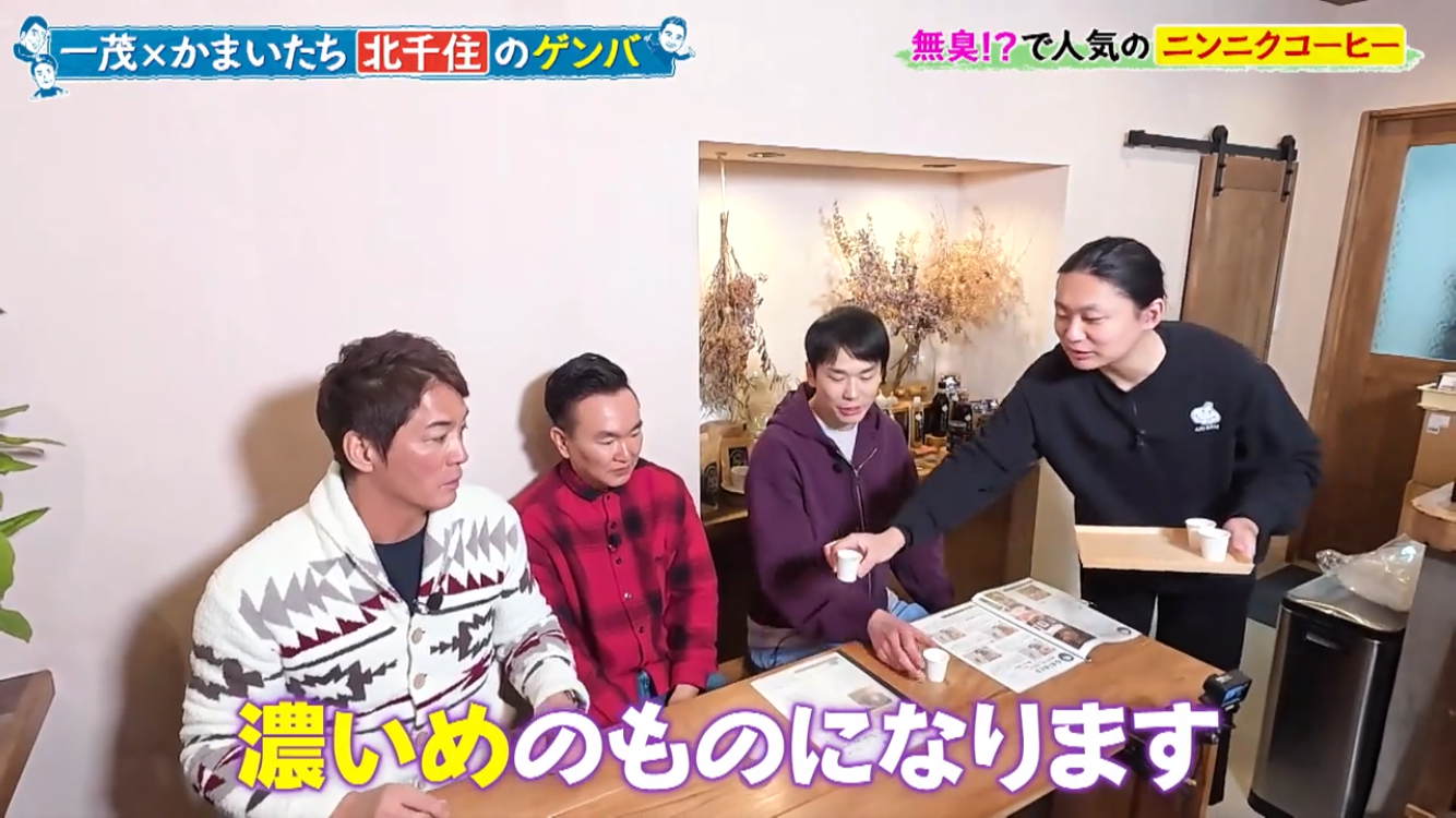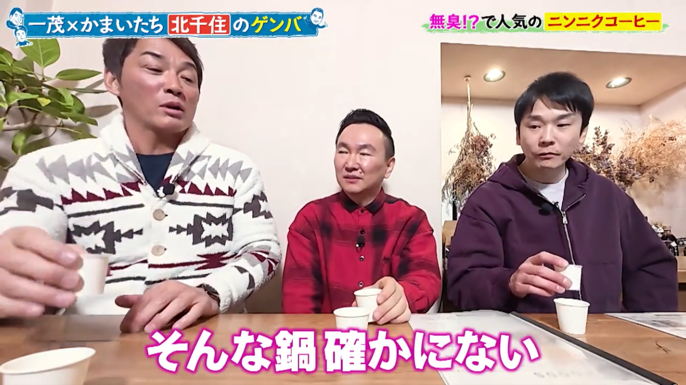 長嶋一茂さん、かまいたちの浜家さんと山内さんのお三方が北千住のアホベイスにご来店。ニンニクスープのアホスープ(鶏ガラベース、旨辛)、にんにく漬物3種、黒にんにく珈琲のアホベイス珈琲、黒にんにく、チーズタップリの当店大人気にんにくパンのアホパンを召し上がられ、気に入っていただけました。ご来店いただき誠にありがとうございます!